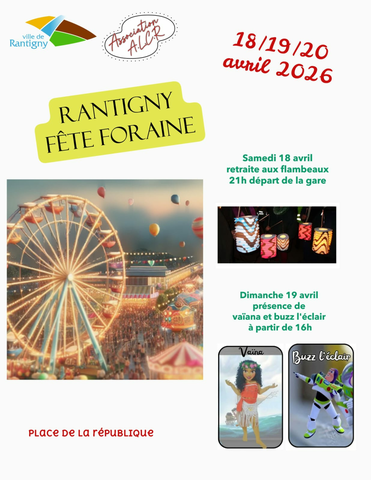 Fêtes et manifestations - Rantigny Date Du Samedi 18/04/2026 - 15h00 au Lundi 20/04/2026 18h00 Fête foraine Lieu Place de la république 60290 Rantigny France